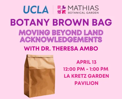 Join for another installment of Botany Brown Bag. Dr. Theresa Ambo will give a talk titled “Moving Beyond Land Acknowledgements.” Formal land acknowledgments are an evolving practice designed to recognize...